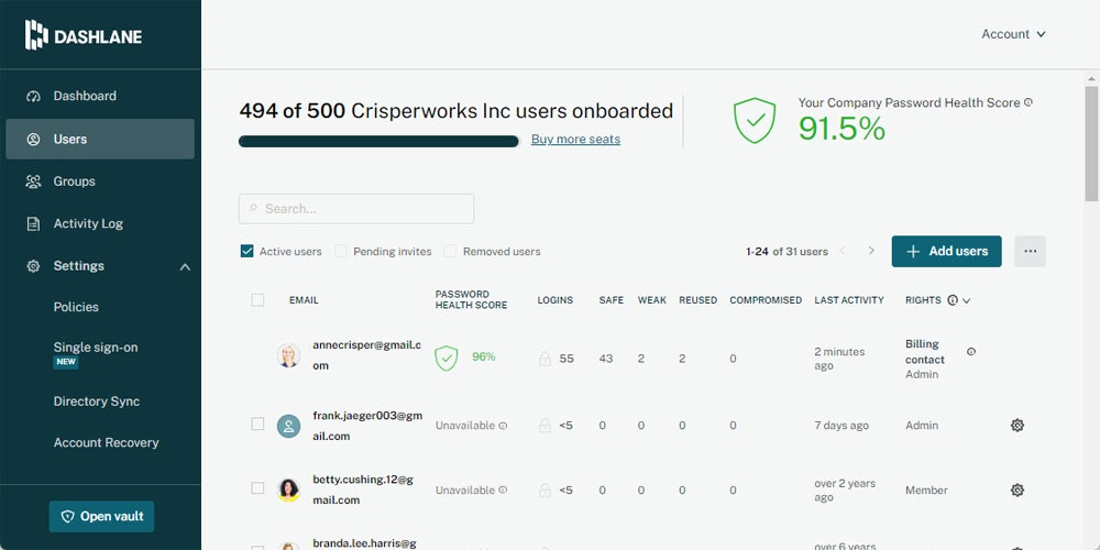 1Password is an enterprise-grade password manager for businesses of all sizes, but it’s particularly cost-effective for larger teams because of features like guest accounts and travel mode. If you’re looking for a stronger security record than LastPass’s, 1Password has a clean breach history and has limited account recovery options, which actually makes vaults more secure. It uses secret account keys and PBKDF2 key strengthening to increase security, too.