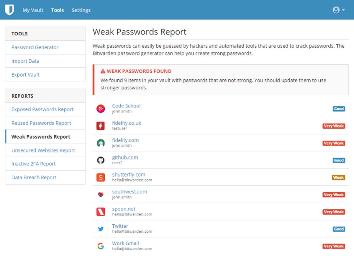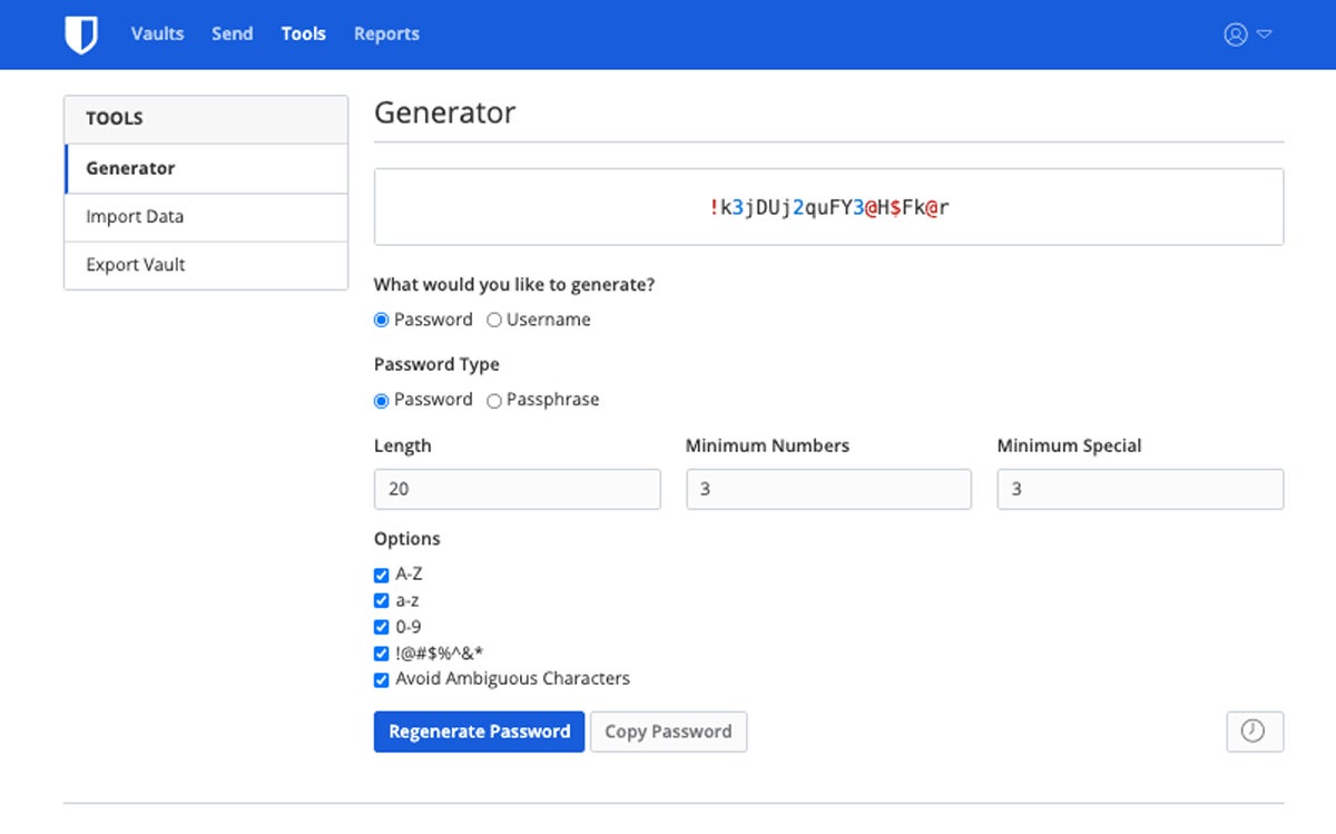 - Vault health reports: Supplies on-demand reports that identify weak, reused, and exposed passwords as well as inactive 2FA logins and unsecure websites visited.