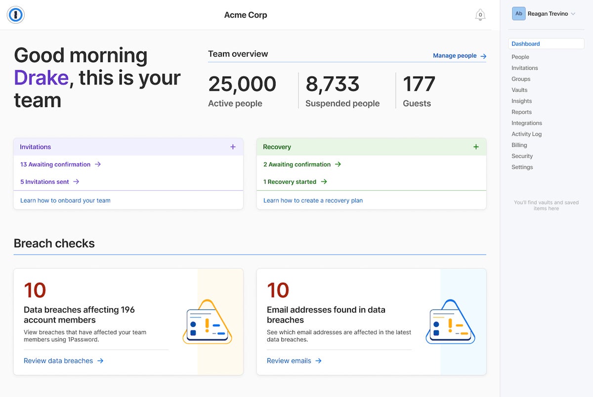 - 1Password: Best for a balance of security and user experience ($19.95 flat fee for up to 10 Teams users per month, $7.99 per user per month for Business license)