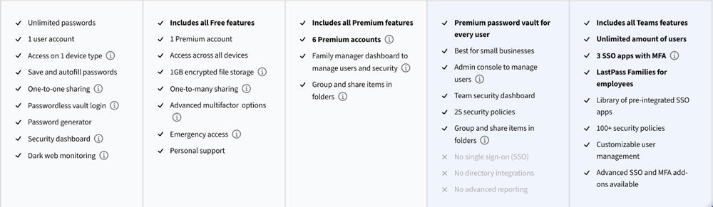- Select the subscription plan from the LastPass website that best fits your needs, such as Free, Premium, Families, Teams, or Business.