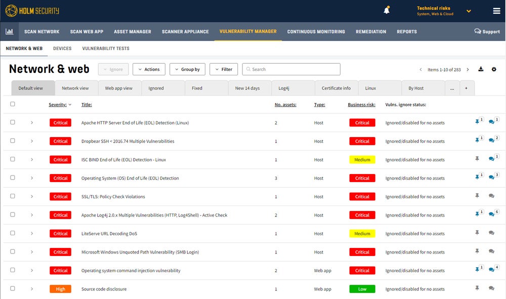 Holm Security VMP is a next-gen vulnerability management platform that helps detect weaknesses across your network and human assets on a single platform. Among the platform’s standout features is its phishing module, which simulates phishing attacks on employees to identify weaknesses and train teams in security. Holm Security is preferred by SMBs thanks to its value and features like phishing awareness, but its capabilities also apply to large teams.