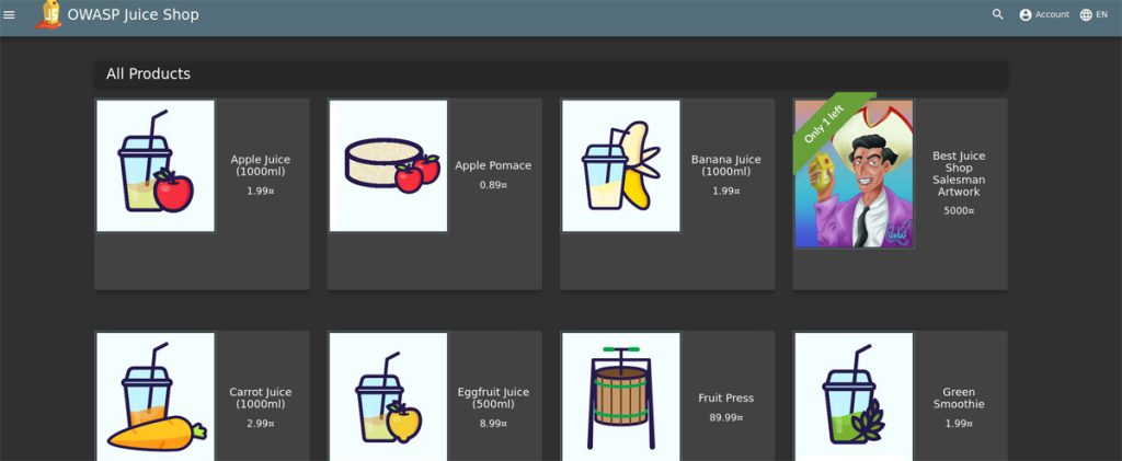 We’ll use the OWASP Juice Shop, “the most modern and sophisticated insecure web application,” as the vulnerable target.